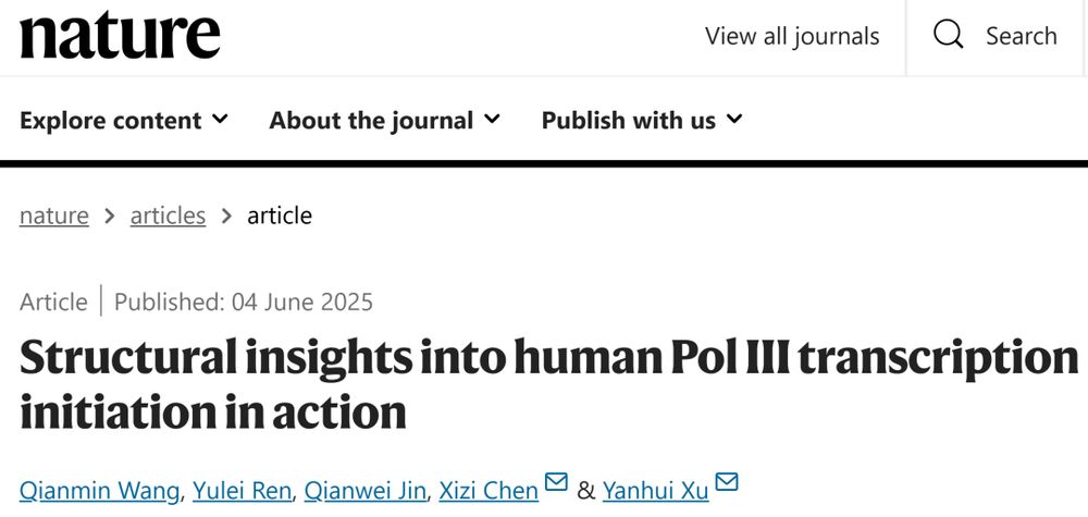2025年6月4日,上海梧桐岛生命科学研究院双聘教授徐彦辉团队在Nature杂志在线发表题为Structural insights into human Pol III transcription initiation in action的研究论文。